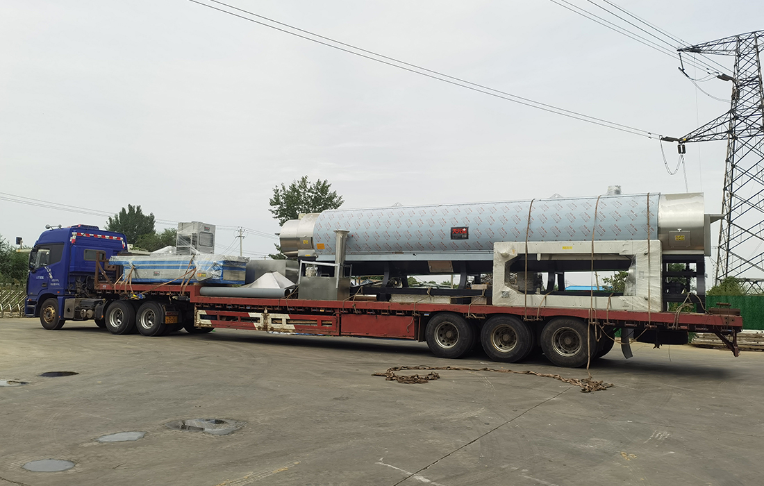 山東濰坊壁流式花生炒機R45型(加高20公分)100型4米冷卻床,中型多級花生篩選機,330*42提升機,裝車發(fā)貨