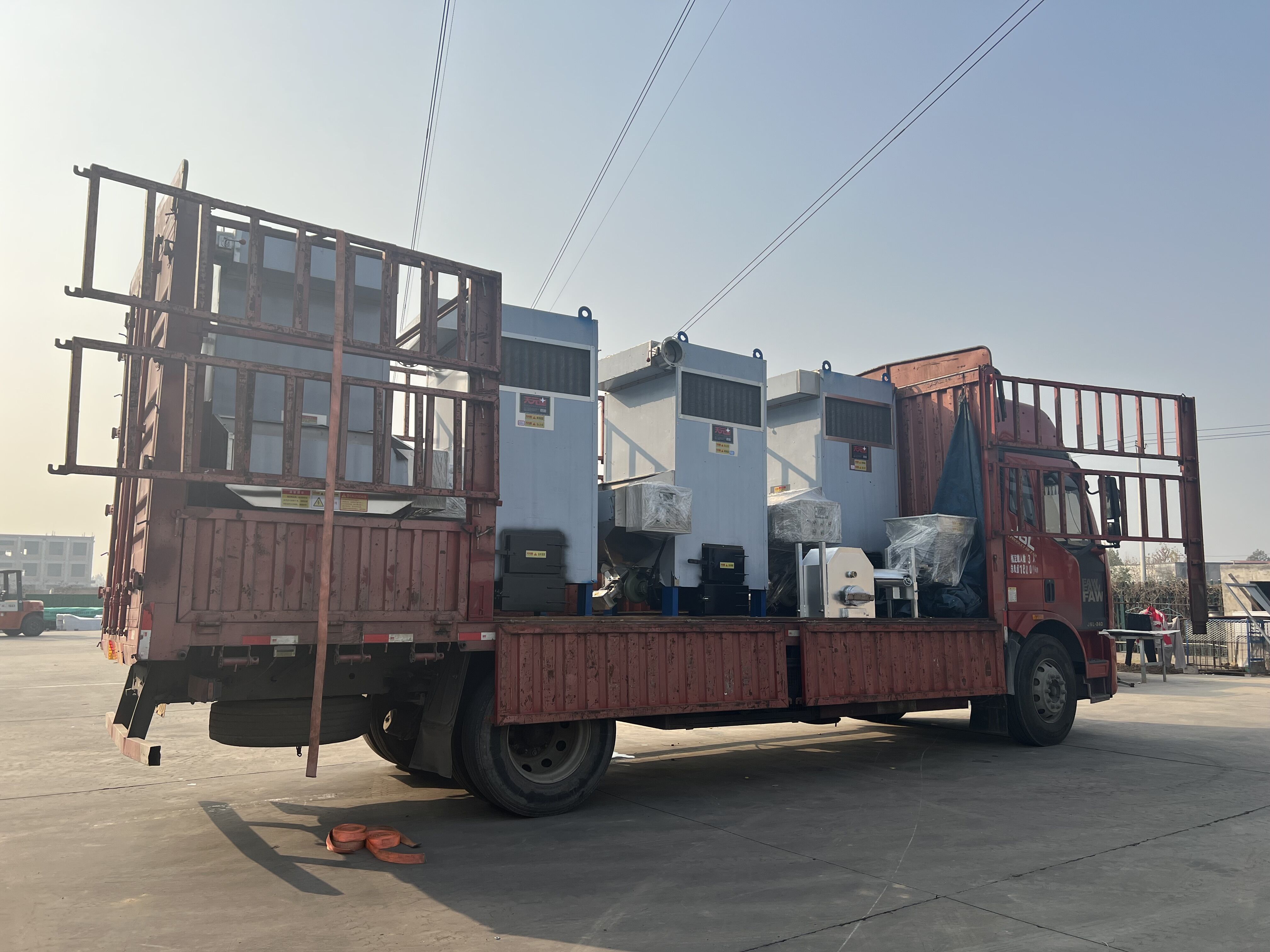 保定高碑店生物顆粒熱風(fēng)爐左4臺(tái),生物顆粒燃燒機(jī)發(fā)貨